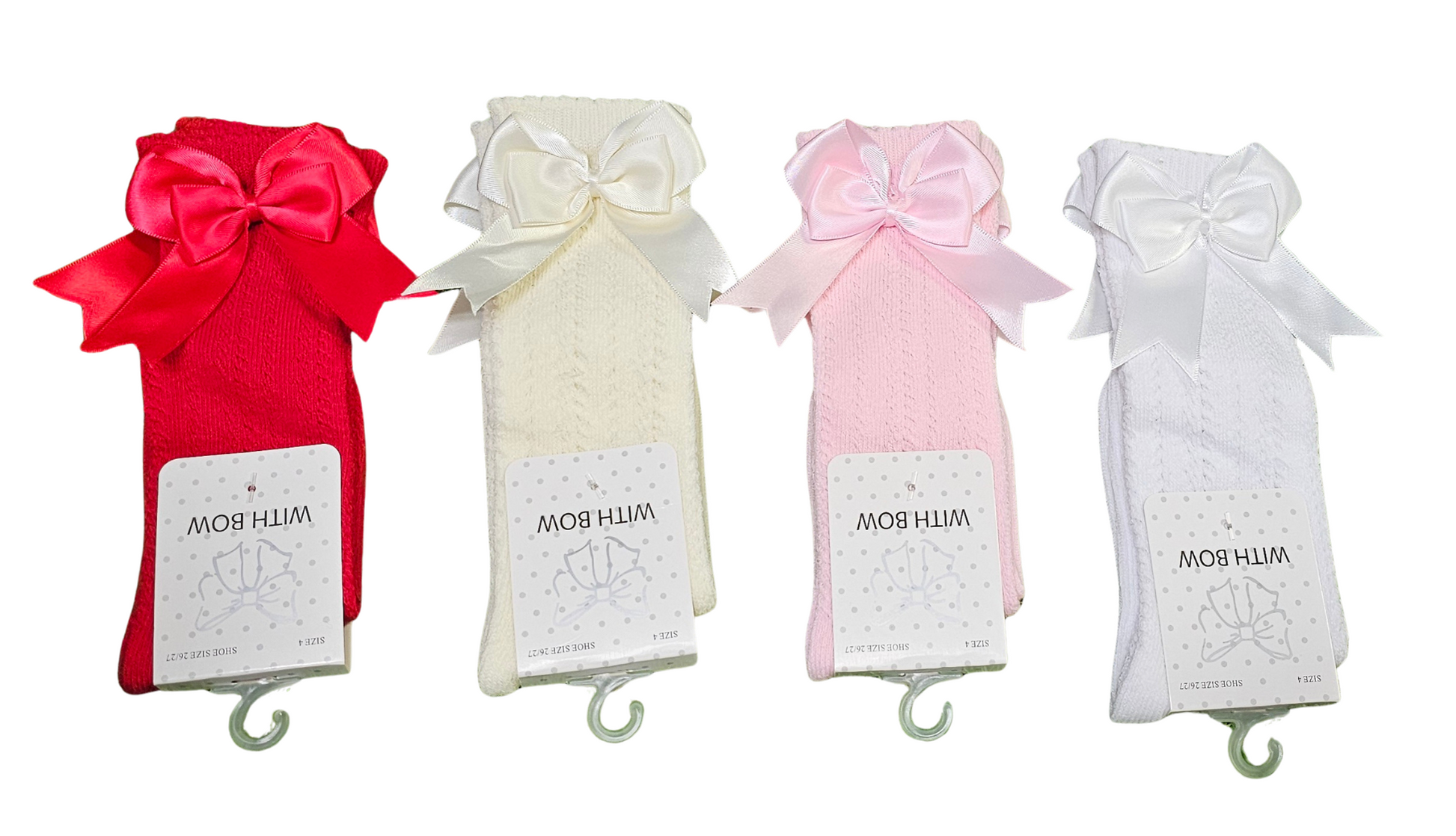 Buy 8 or more and save $2 per pair! Mix and match with double bow socks, double bow lace socks, pom socks and more!