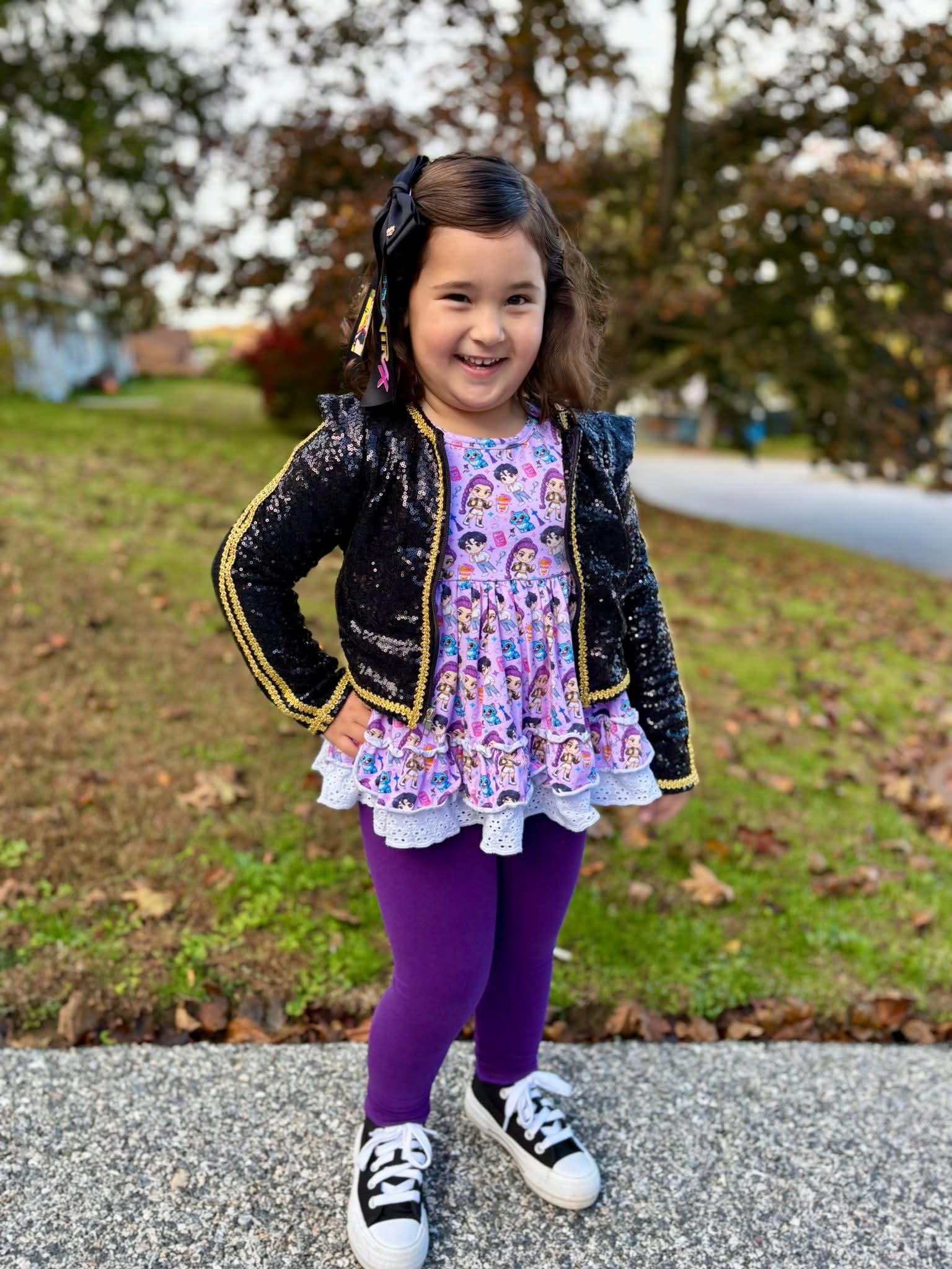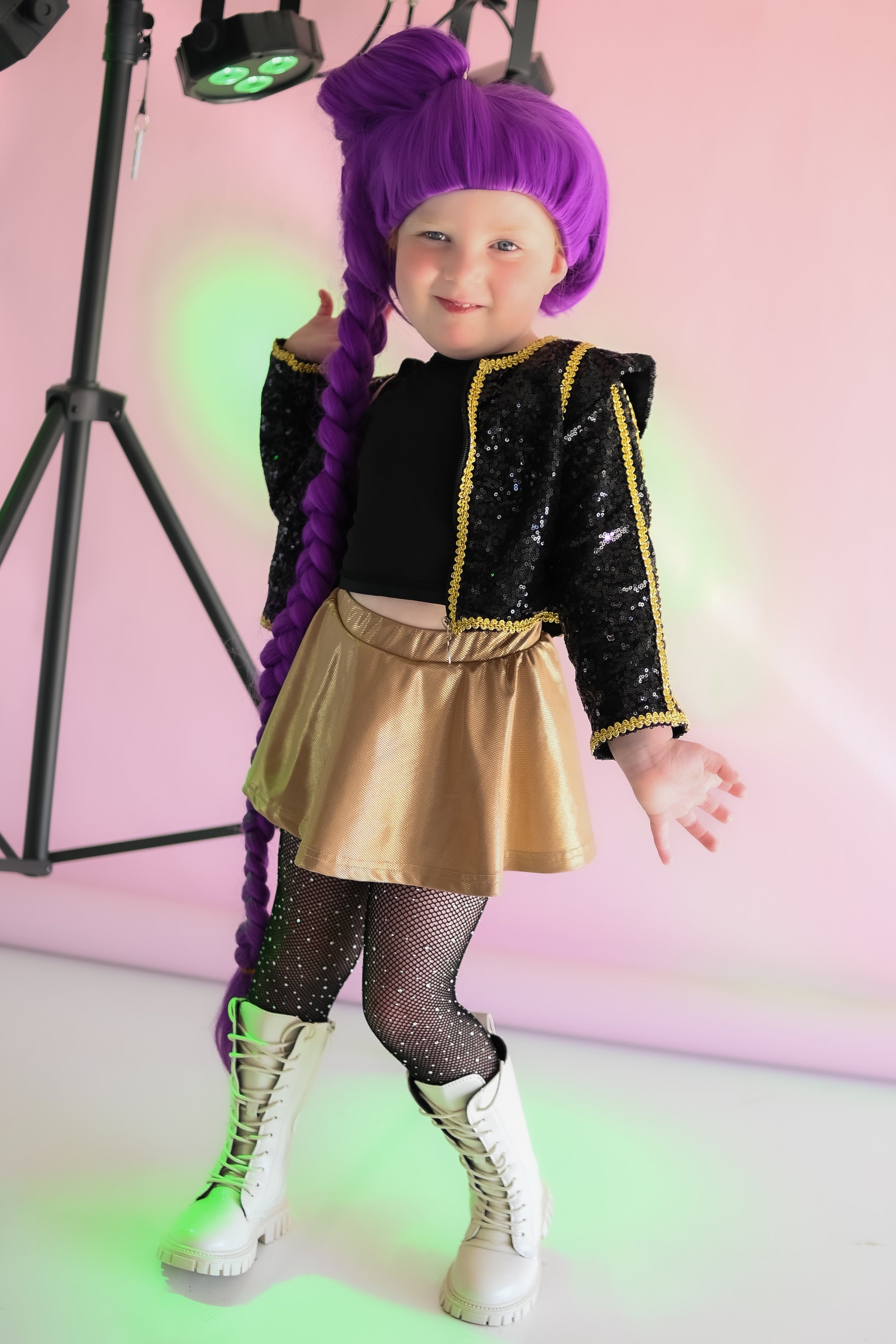 Shine like a star on stage (or at your next outing) with these K-pop inspired matching jackets! Designed with bold black sequins and glam gold trim, these cropped jackets are perfect for turning any moment into a performance.