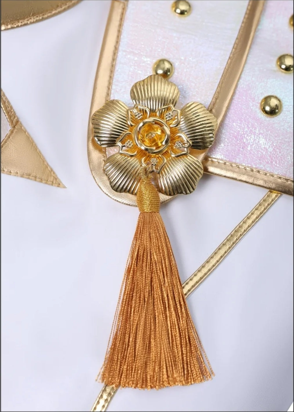 Regal White & Gold Theme – Crisp white fabric is paired with shimmering gold accents for a commanding stage-ready look.