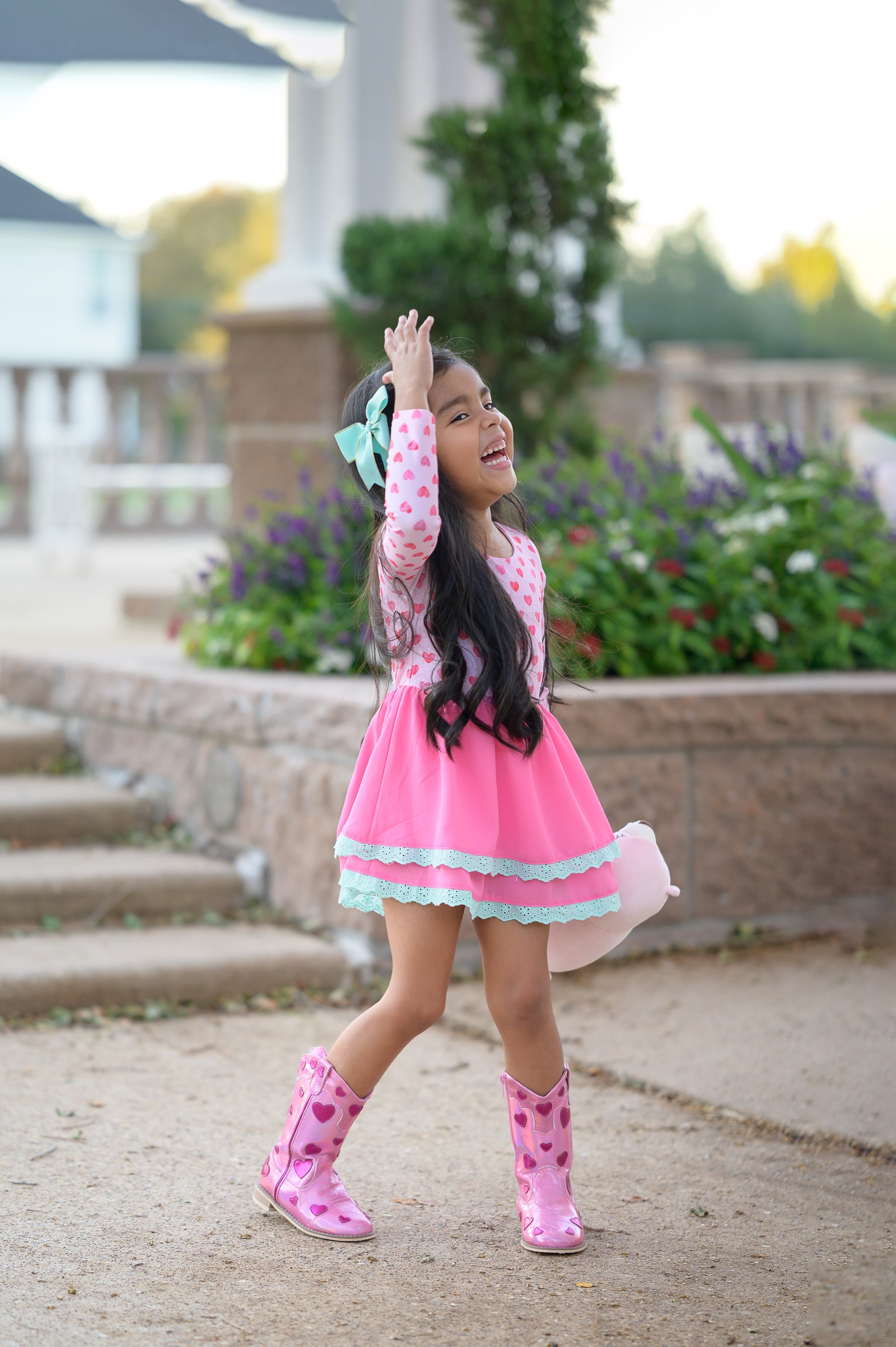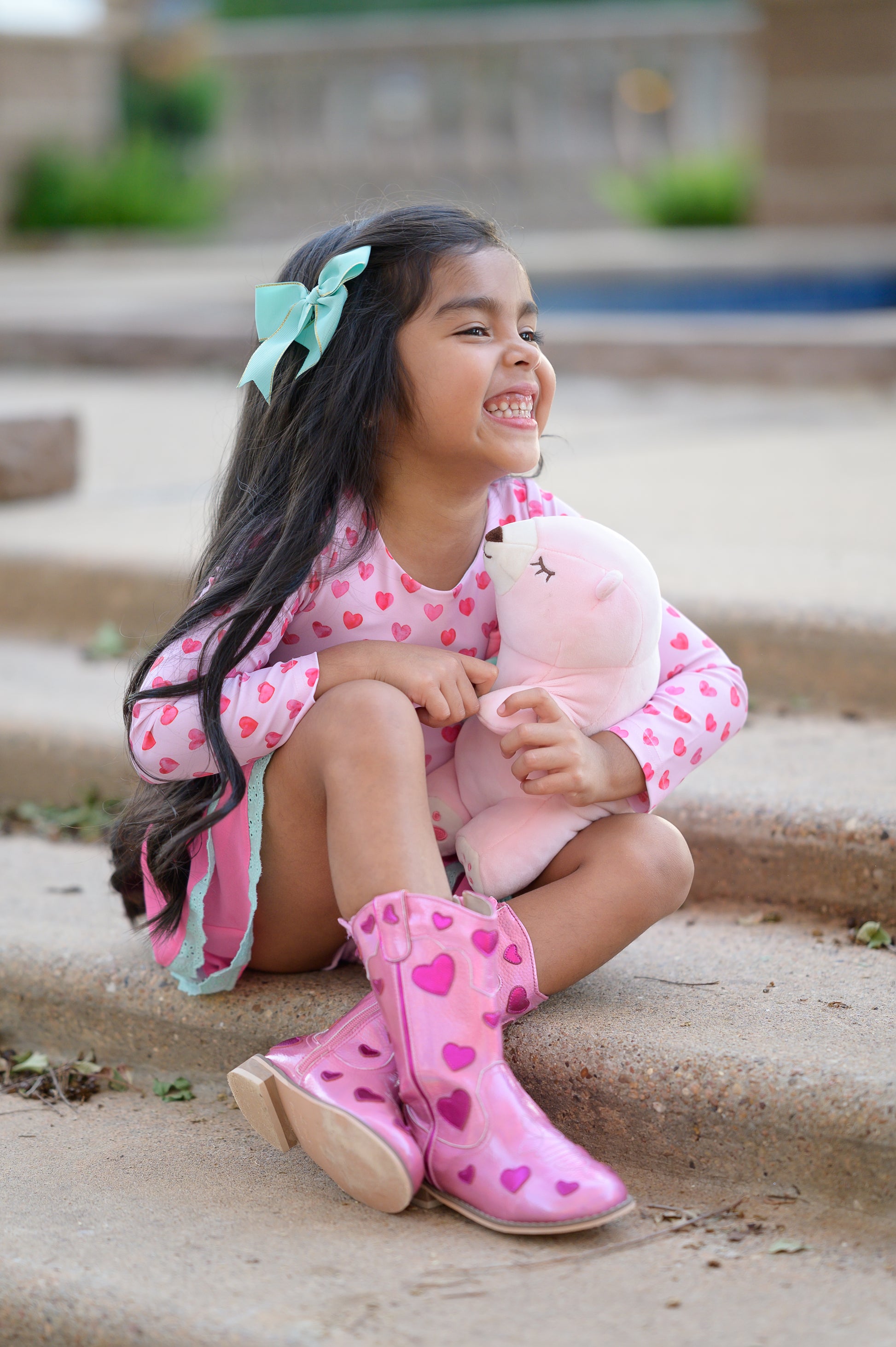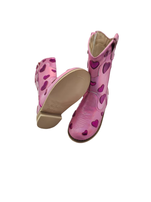 These shimmering Love Story Embroidered boots are made for twirls, giggles, and heart-filled adventures. Crafted in a metallic pink finish and sprinkled with glossy magenta hearts, they’re the ultimate statement piece for your little fashionista. A side zipper makes dressing a breeze, while the sturdy sole is perfect for playgrounds, parties, and everything in between. Pair them with her favorite dress or tutu for instant magic!