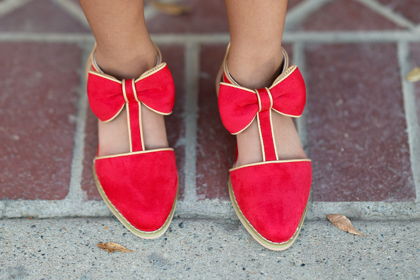 Step into storybook style with our Ruby Bow Charm Heels – the perfect blend of playful whimsy and timeless elegance. These vibrant red suede-inspired shoes feature a bold oversized bow on the ankle strap. A comfortable low block heel and back zipper make them easy for little feet to slip on while providing all-day wearability. Finished with golden trim for a touch of sparkle, these shoes are ideal for parties, photoshoots, or simply adding a pop of magic to everyday outfits.