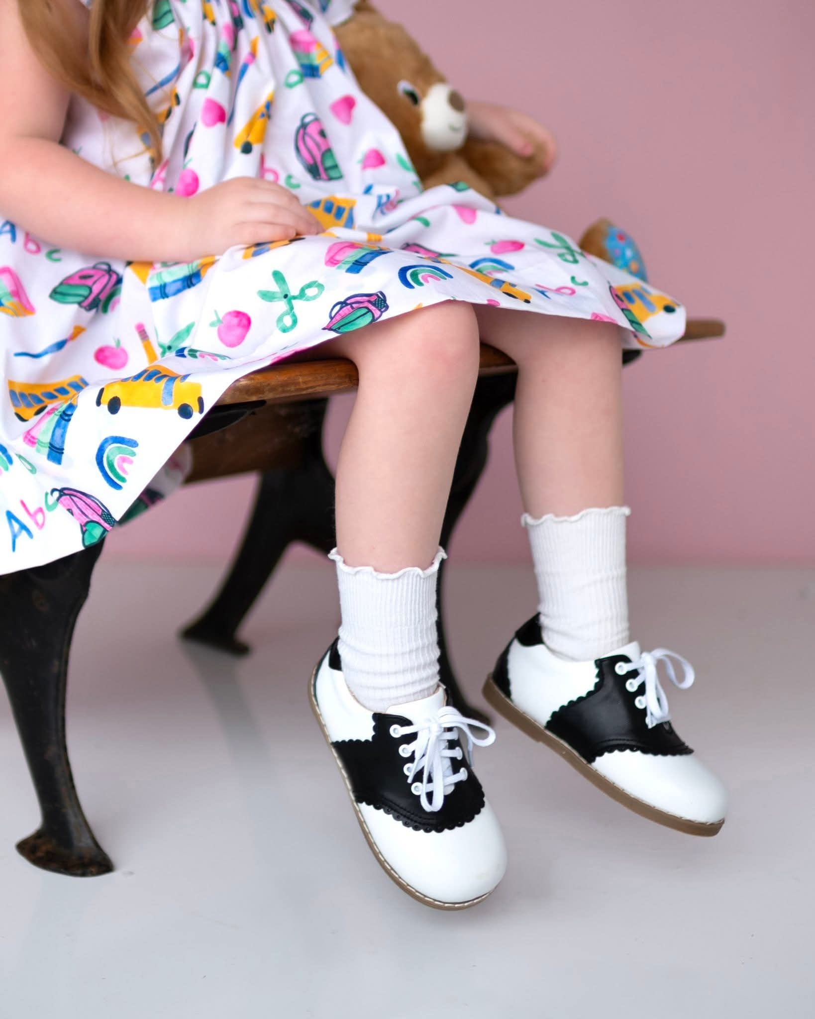 Perfect for picture days, twirling in dresses, or simply stepping out in style — these saddle shoes are a must-have staple for every little trendsetter's wardrobe.