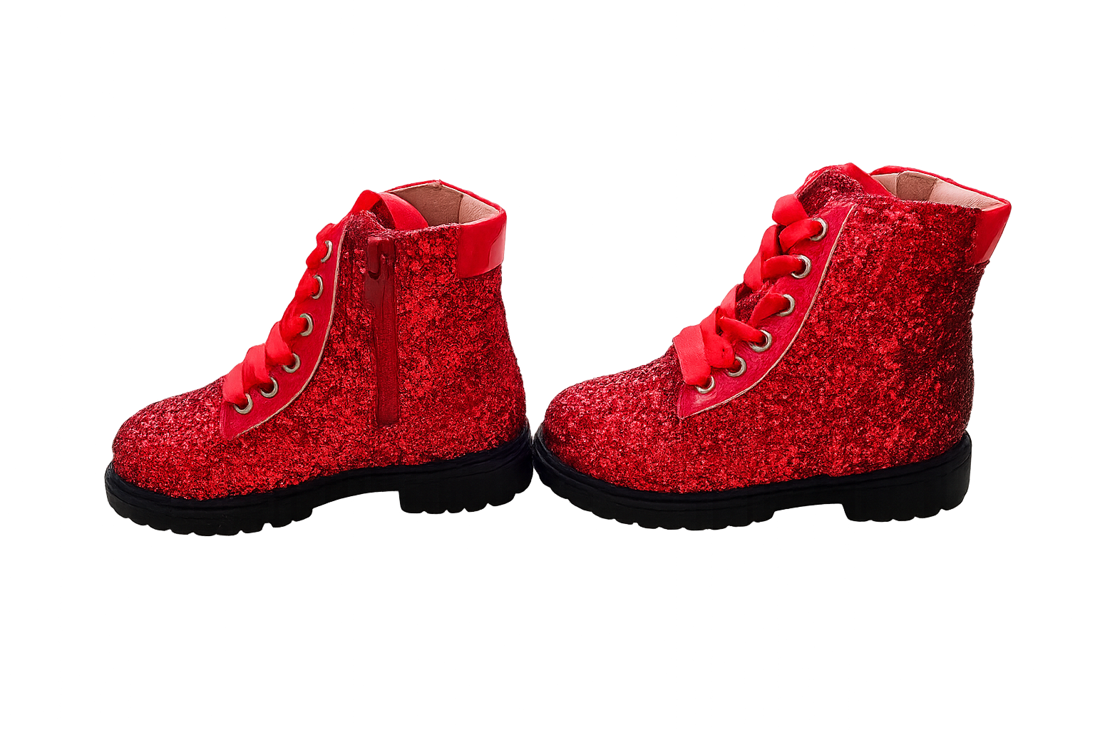 Meet the Sparkle Squad—a glittery gang of color-popping boots that bring bold style and magical fun to every step! These show-stopping boots feature shimmering glitter finishes, chunky soles built for adventure, and wide satin laces for a dash of glam. With colors that dazzle in the light—and one pair that shifts from mysterious black to enchanting purple—the Sparkle Squad is made for little trendsetters who shine wherever they go.